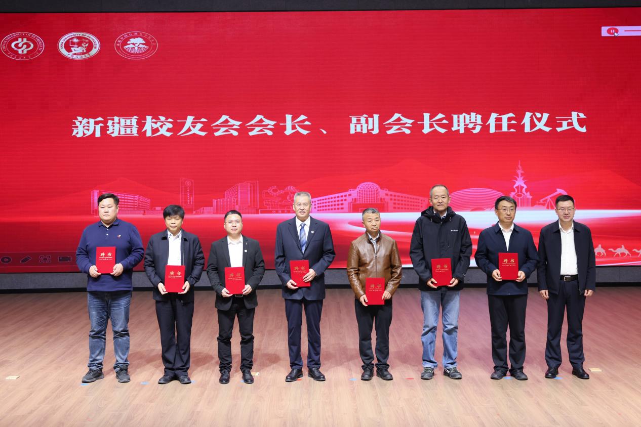 文永紅為校友會授牌,為會長陳大恩和副會長杜文強(qiáng)、張理飛、黃國濤、和永亮、郭緒強(qiáng)、徐長亮頒發(fā)聘書。上海校友會、甘肅校友會、廣西校友會、貴州校友會、湖南校友會、西安校友會、深圳校友會、武漢校友會、天津校友會、四川校友會、云南校友會、合肥校友會等校友組織分別向新疆校友會送來賀信和祝福。
